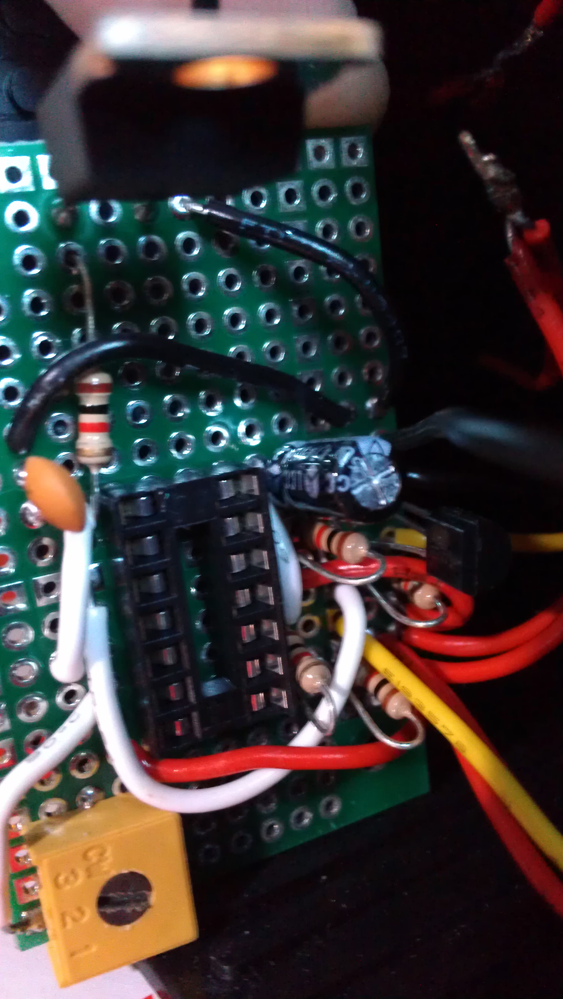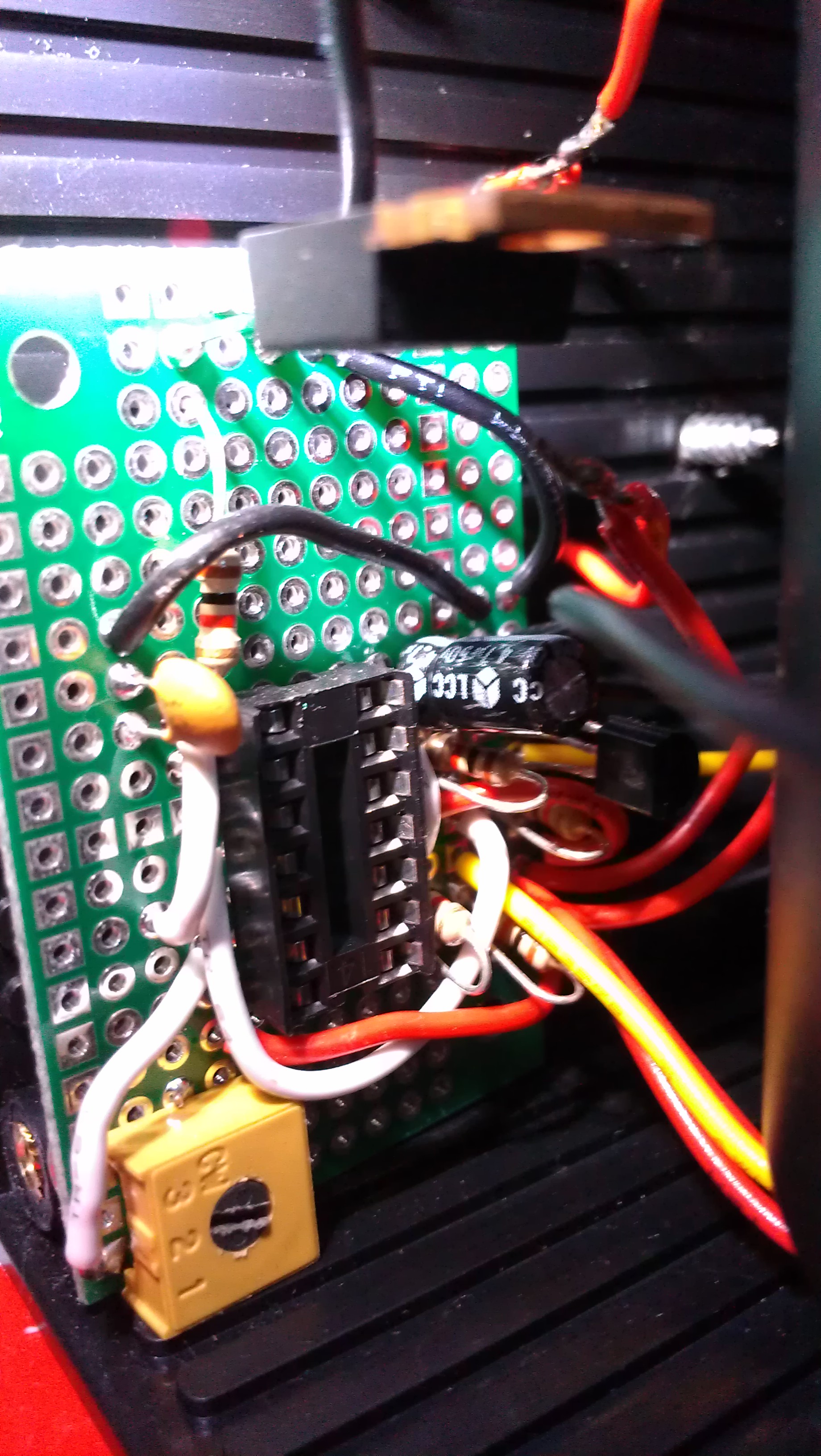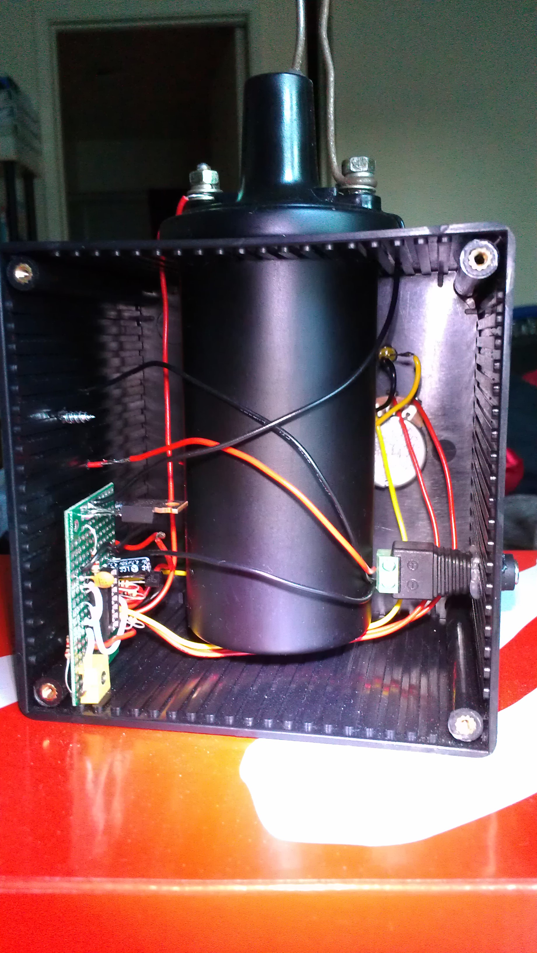 I built the desktop Jacob's ladder from the pdf files found on the Thinkbotics website (http://www.thinkbotics.com/products.htm http://www.thinkbotics.com/jacobs-ladder-article.zip). However, I am not getting a Jacob's ladder effect from the device; it is more like a spark gap. I've tried different shapes for the electrodes (wider, narrower, different angles, etc.), but the electricity only likes to hang out at the closest gap in brief arcs. The repetition rate pot does change the frequency of sparks, but the arc does not rise at all. I modified the circuit to run off of a 12-volt wall wart, and measurements with a KVM show that the circuit is getting pretty close to 12 volts. The major problem I am experiencing right now is that after switching the device on, I only get about 3 or 4 arcs before the 556 IC burns out; no matter what the repetition rate or trim pot is at, the IC just fries. I've tested the transistors and diodes as well, and they all seem fine. Any suggestions for troubleshooting? I linked some photos of my circuit as well. (https://www.wandkr.com/special/IMAG0608.jpg https://www.wireandkloudready.com/special/IMAG0609.jpg https://www.wandkr.com/special/IMAG0610.jpg https://www.wandkr.com/special/IMAG0611.jpg )
